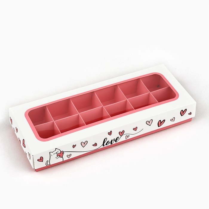 Коробка складная под 12 конфет «Сердечки», 3,8 х 10,5 х 26,5 см