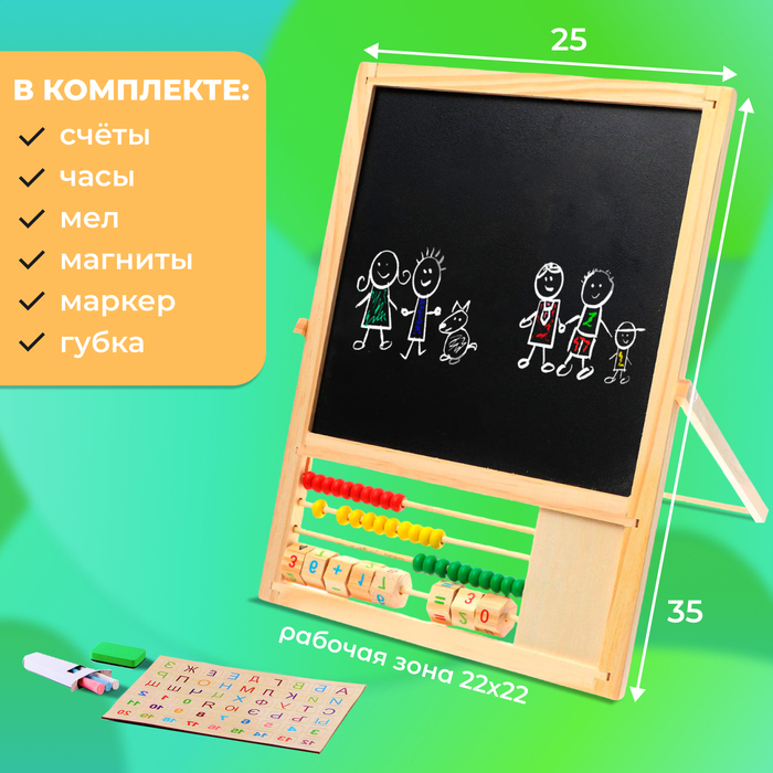 Доска магнитная двухсторонняя, на подставке, рабочее поле: 22 × 22 см