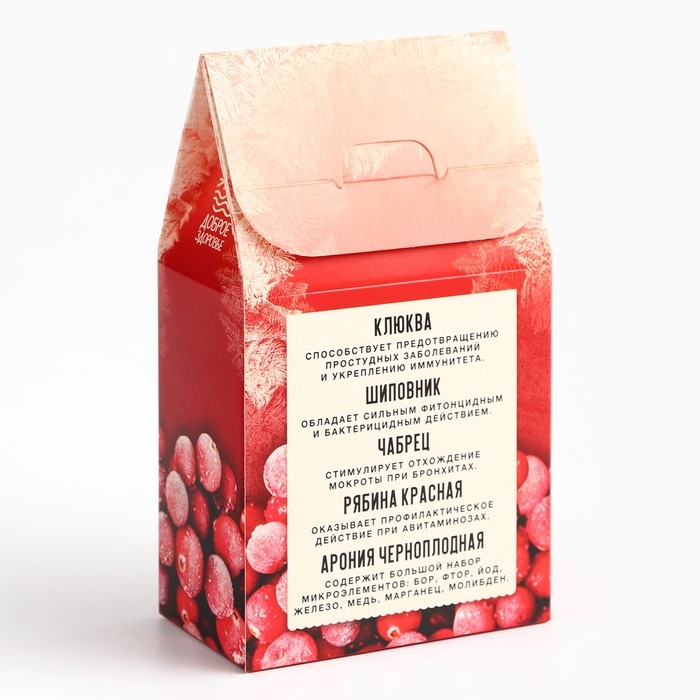 Состав: клюква (ягода), шиповник майский, чабрец (трава), рябина красная, арония черноплодная.
