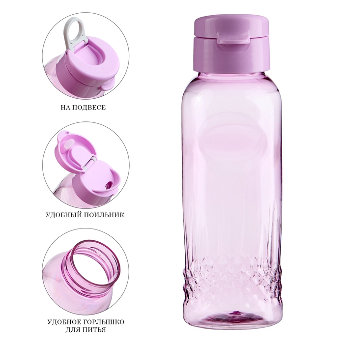 Бутылка для воды спортивная, 650 мл, "Флорес", 4.7 х 22 х 7 см, сиреневая