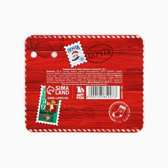 Подарочный набор новогодний, блокнот и брелок пластик «Сказочная почта»