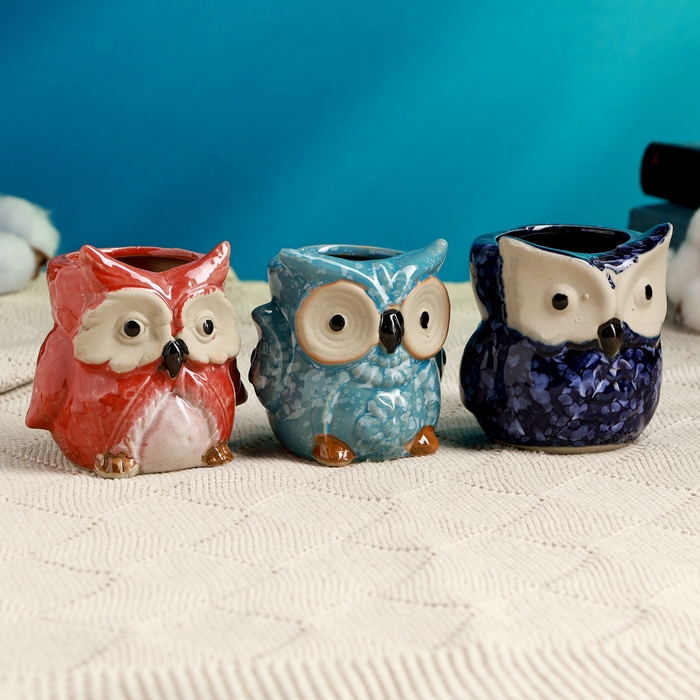 Горшок "Совушка" МИКС, 7х6,5см, 0,1л, d-4 см