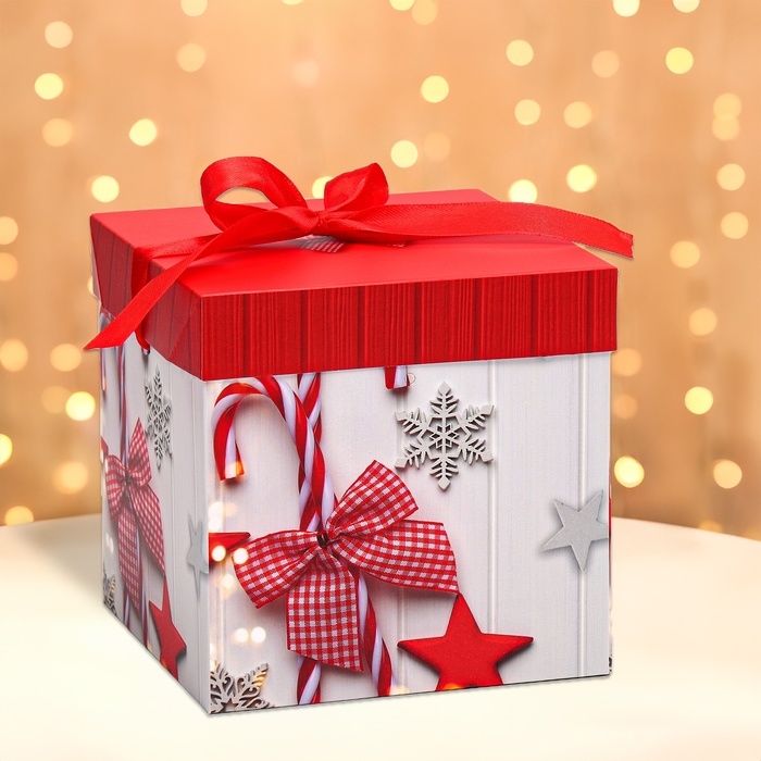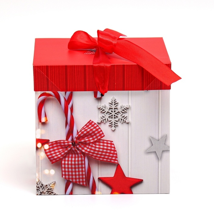 Самосборная новогодняя коробка 15х15х15 см — это практичный и стильный вариант для упаковки подарков.
