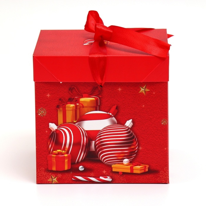 Новый год. Коробка подарочная новогодняя складная "Игрушки" 15х15х15 см.