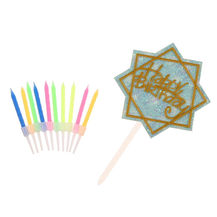 Набор для украшения стола «День рождения»: свечи, топпер, шары, в наборе 16 шт.