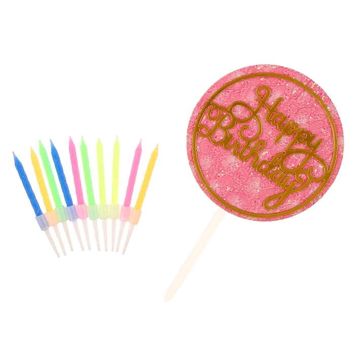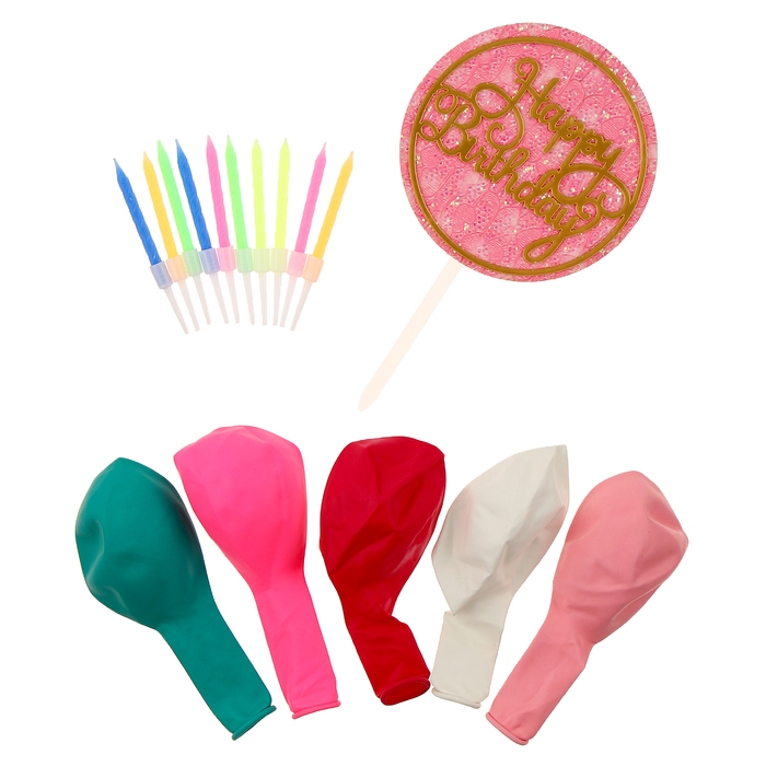 Набор для украшения стола «С Днём рождения»: свечи, топпер, шары, в наборе 16 шт.
