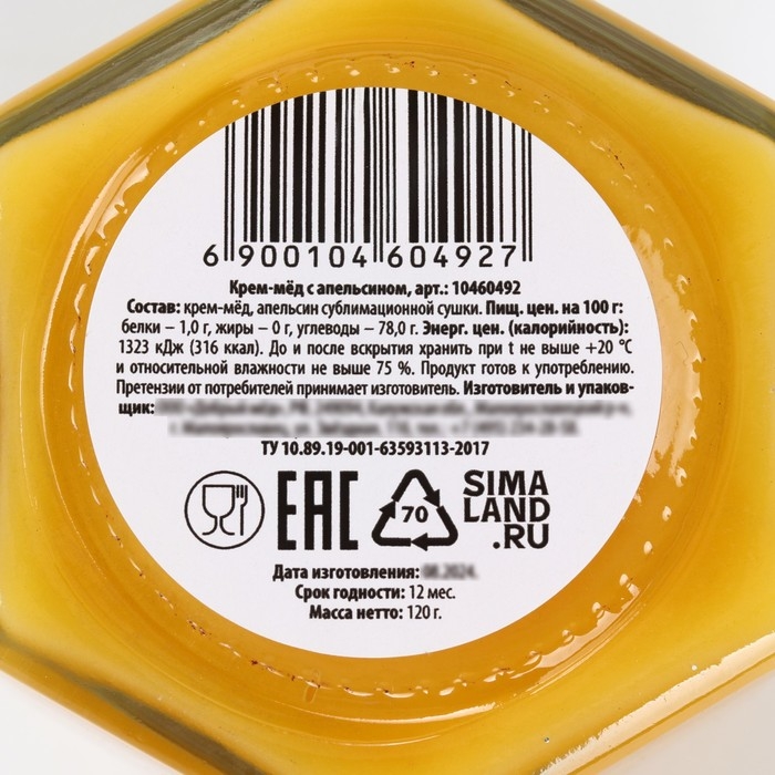 Состав: крем-мёд, апельсин сублимационной сушки.