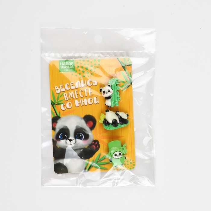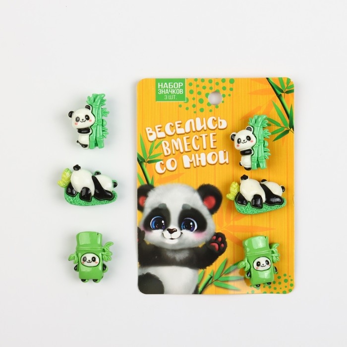 Набор пластиковых значков "Панда", 3 шт, 3 х 2 см