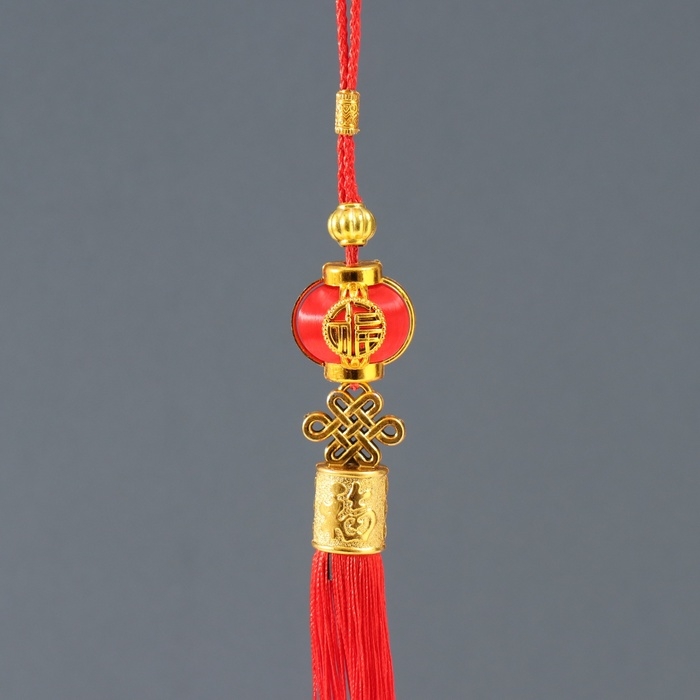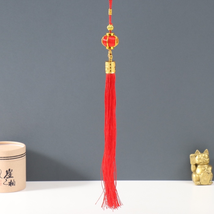 Подвеска пластик, текстиль "Китайский фонарик с узлом счастья" красная 3х3х31 см