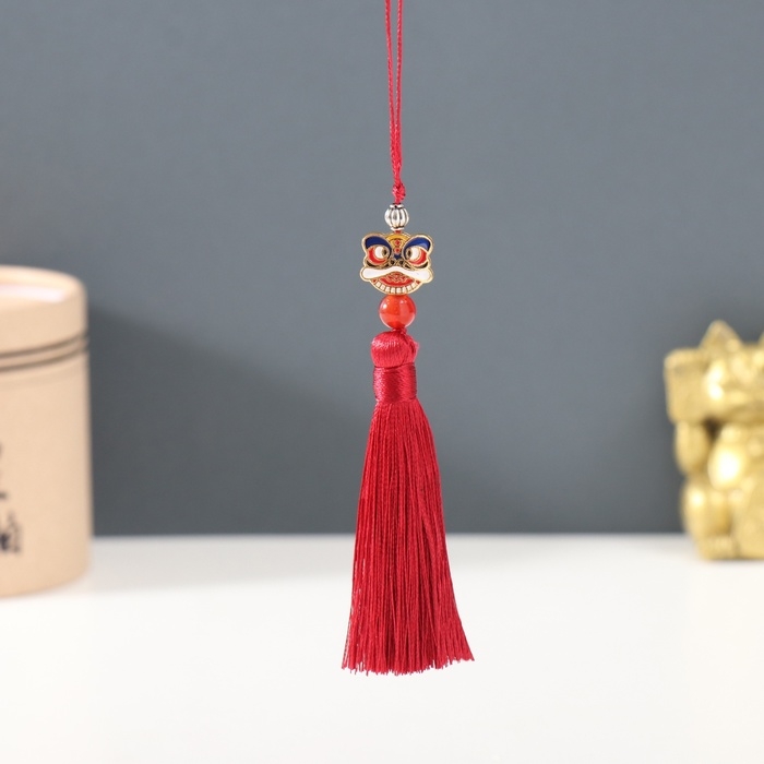 Подвеска текстиль, металл "Китайский лев" бордовая 1х1,2х10 см