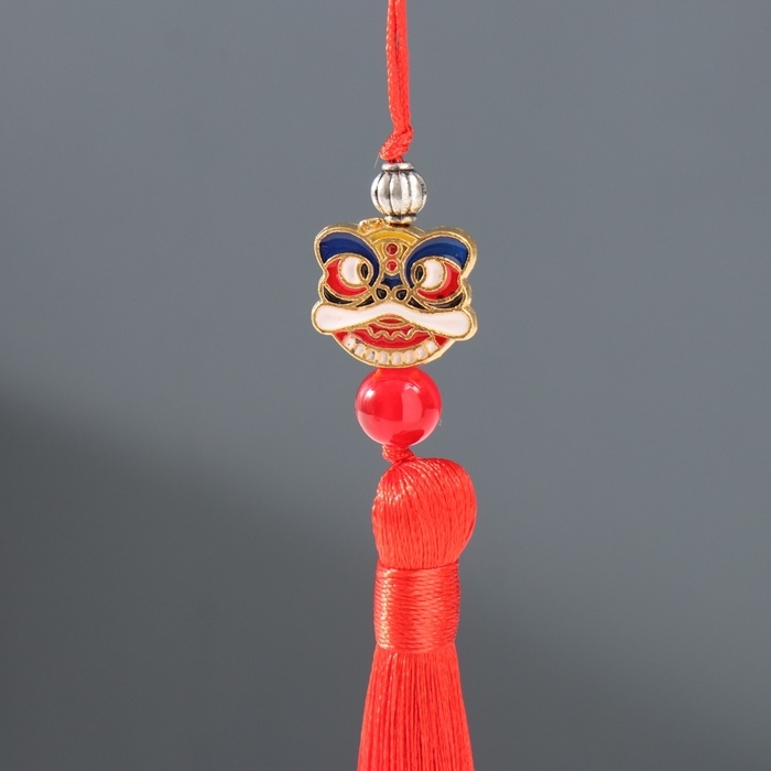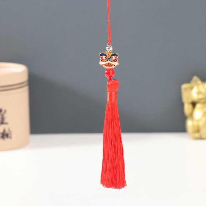 Подвеска текстиль, металл "Китайский лев" красная 1х1,2х10 см