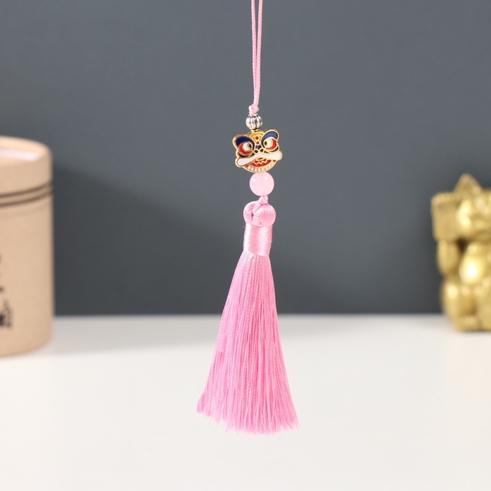Подвеска текстиль, металл "Китайский лев" розовая 1х1,2х10 см