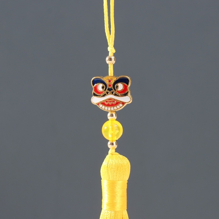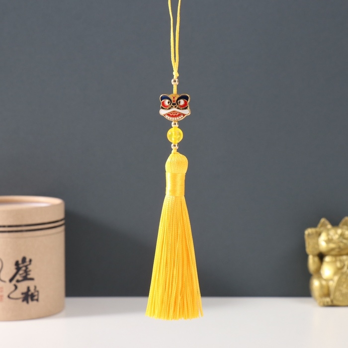 Подвеска текстиль, металл "Китайский лев" жёлтая 1х1,2х10 см