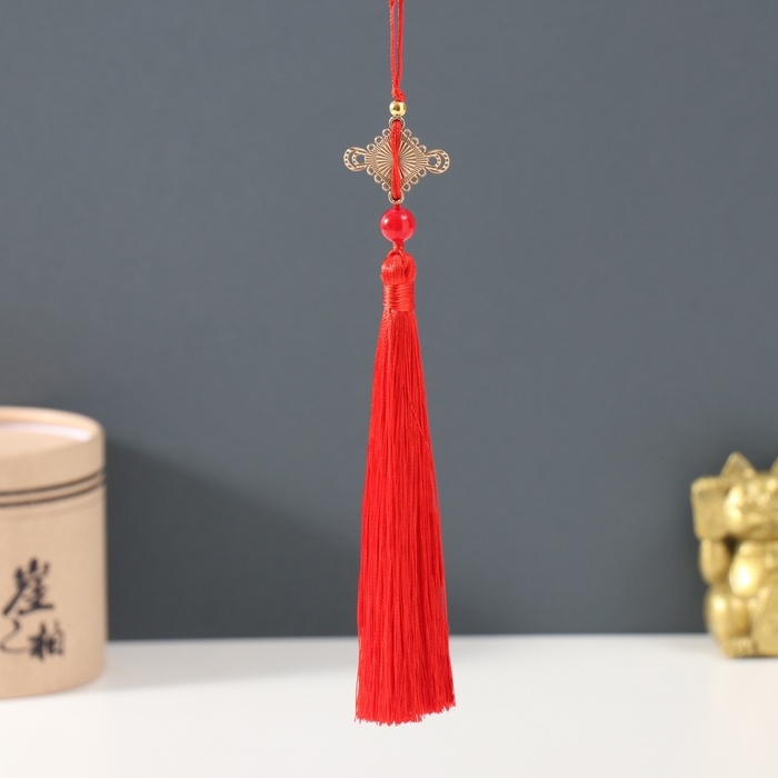 Подвеска текстиль, металл "Узел счастья и бесконечности с иероглифом" красная 1х1,2х19,3 см 105374