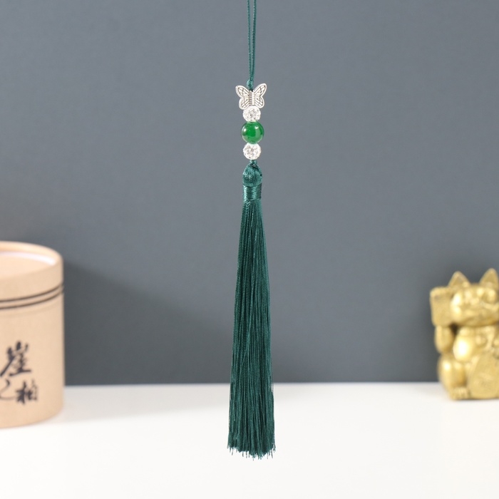 Подвеска текстиль, металл "Бабочка" тёмно-зелёная 1х1,2х16,5 см