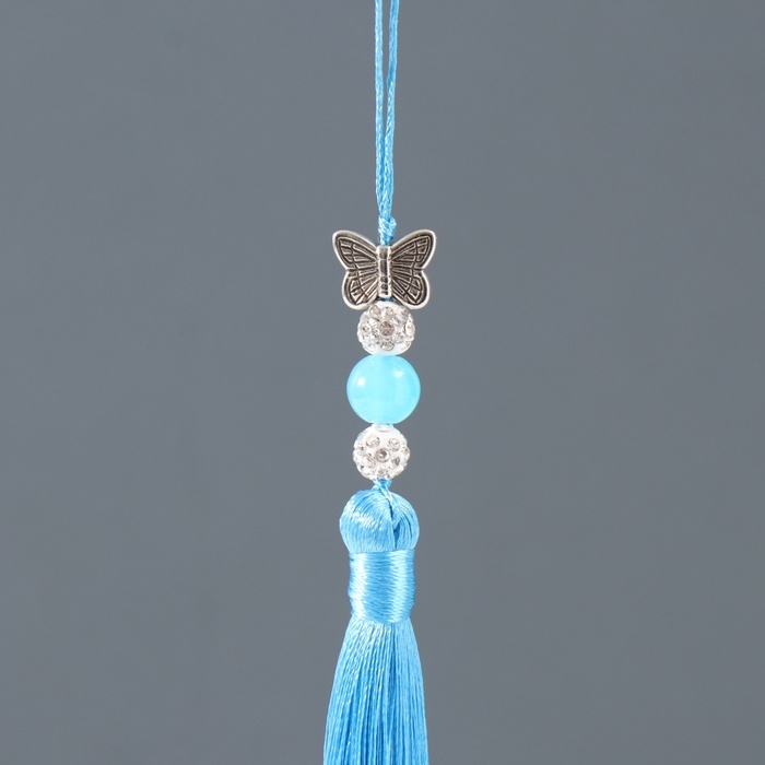 Подвеска текстиль, металл "Бабочка" синяя 1х1,2х16,5 см