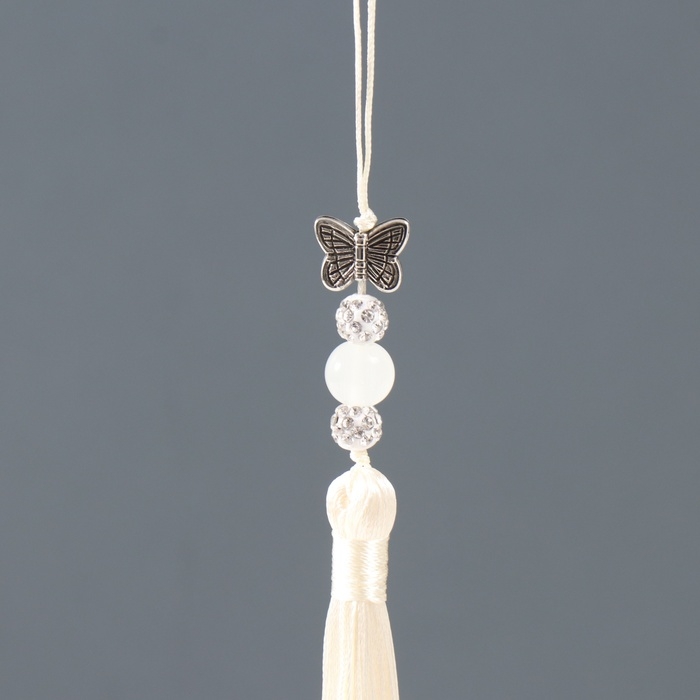 Подвеска текстиль, металл "Бабочка" слоновая кость 1х1,2х16,5 см