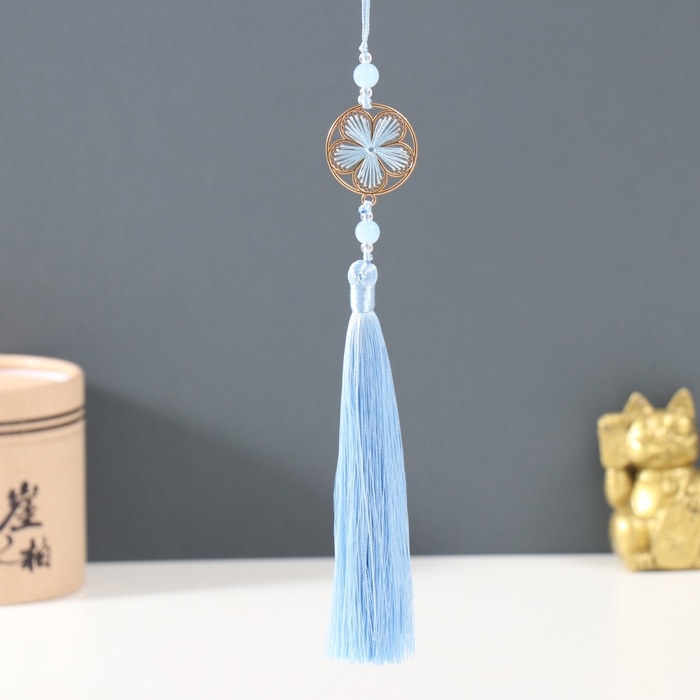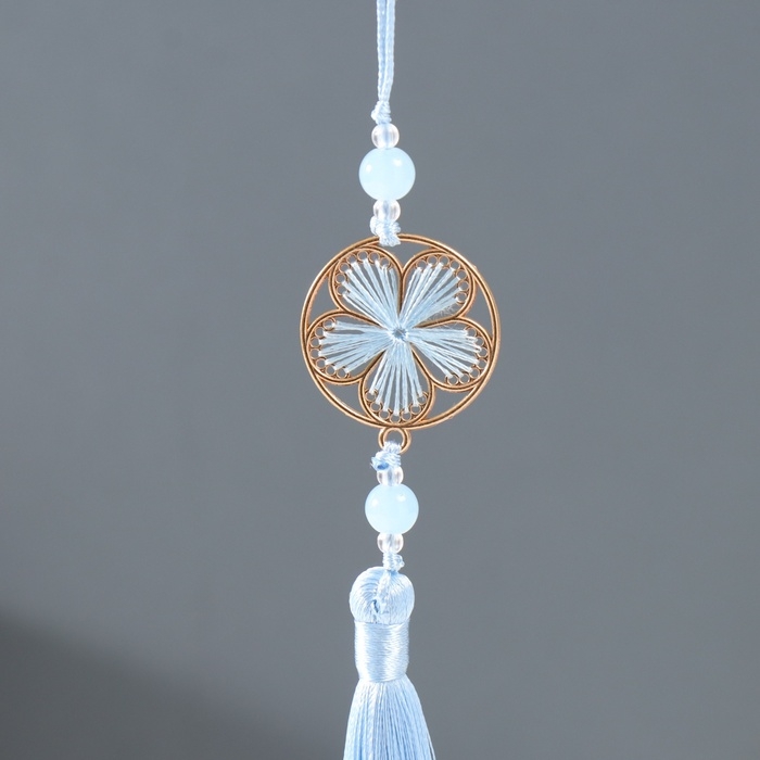 Подвеска текстиль, металл "Цветок в оправе" голубой 1х3х19,5 см