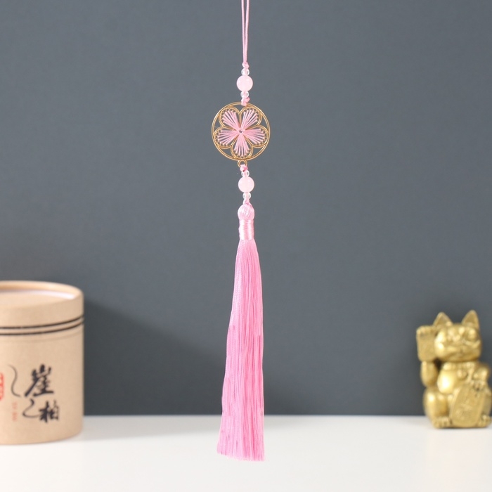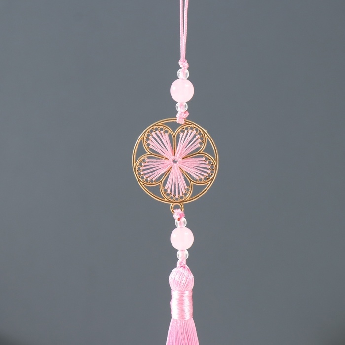 Подвеска текстиль, металл "Цветок в оправе" розовая 1х3х19,5 см