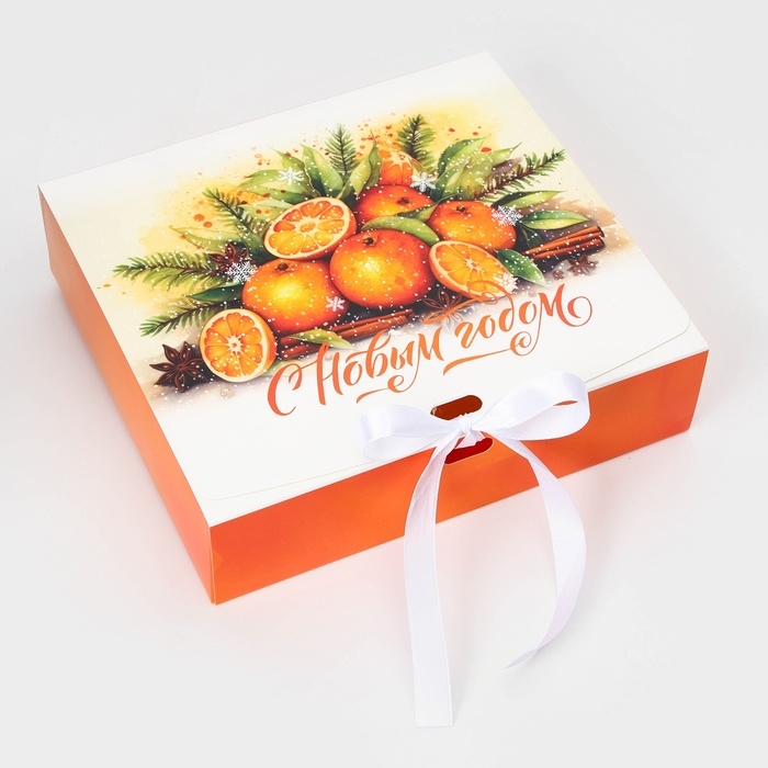 Новый год. Коробка подарочная новогодняя складная, упаковка, «Апельсины», 20 × 18 × 5 см.