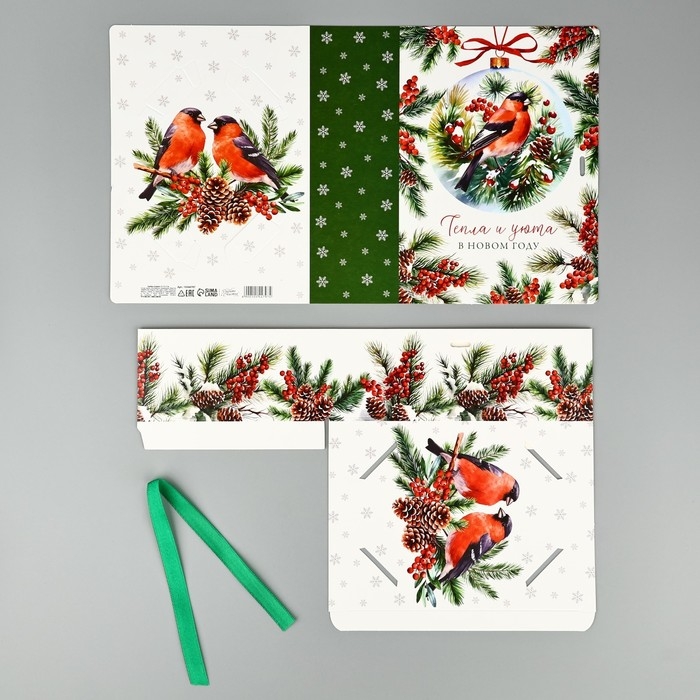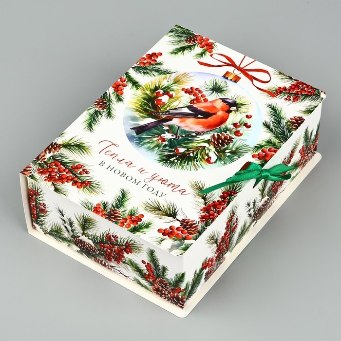 Складная новогодняя коробка-книга «Снегири», 21 х 15 х 7 см, Новый год