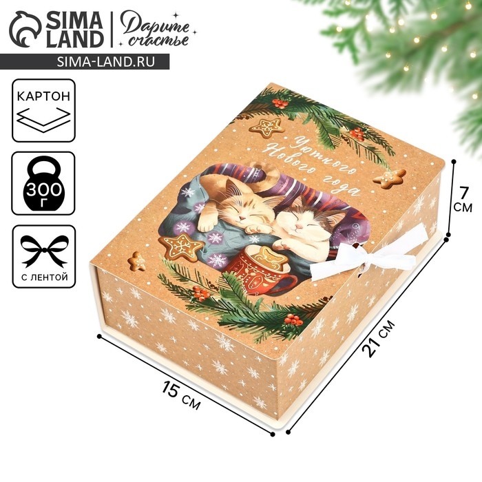 Складная новогодняя коробка-книга «Уютного Нового года», 21 х 15 х 7 см, Новый год