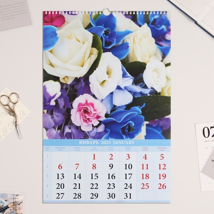 Календарь перекидной на ригеле А3 "Любимые букеты " 2025, 32 х 48 см