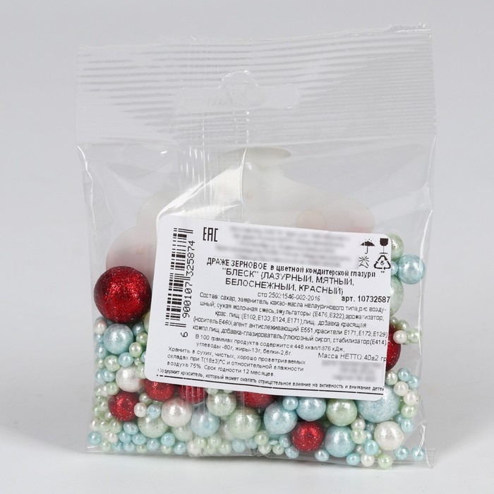 Новый год! Посыпка кондитерская мягкая, блестящая: лазурный, мятный, белоснежный, красный, 40 г