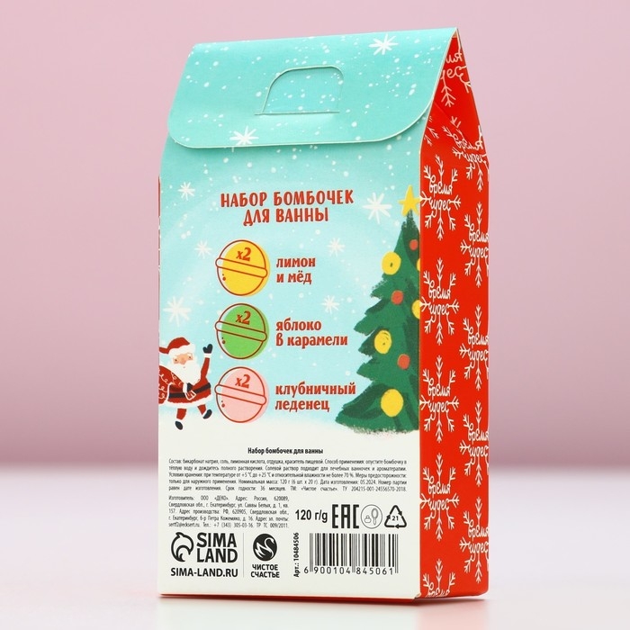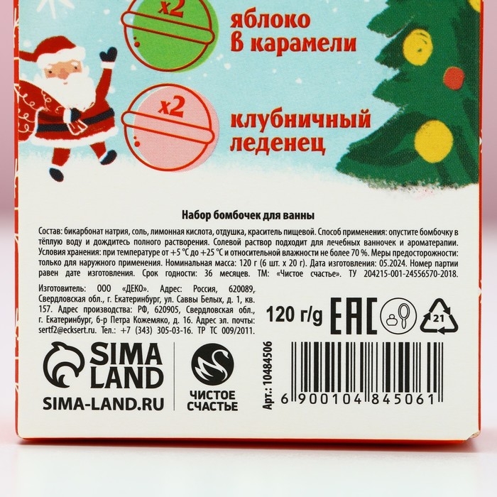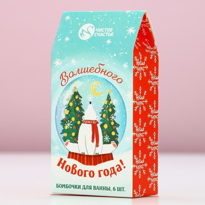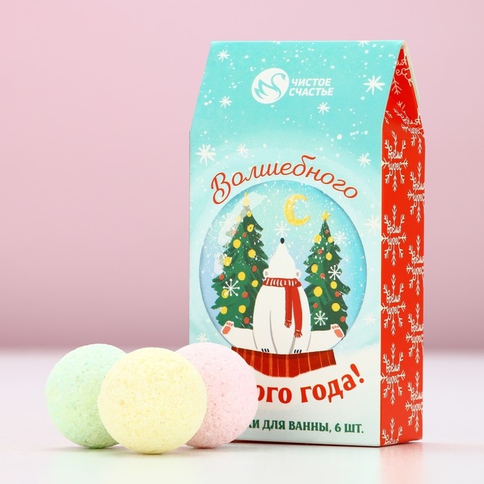 Подарочный набор косметики «Волшебного Нового Года», бомбочки для ванны, 6 х 20 г, аромат лимона и мёда, яблока в карамели и клубничного леденца, ЧИСТОЕ СЧАСТЬЕ
