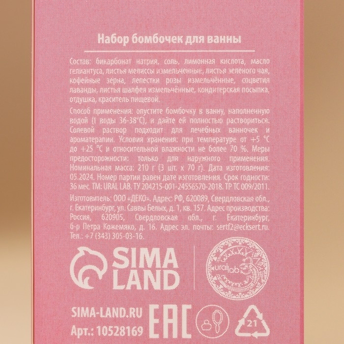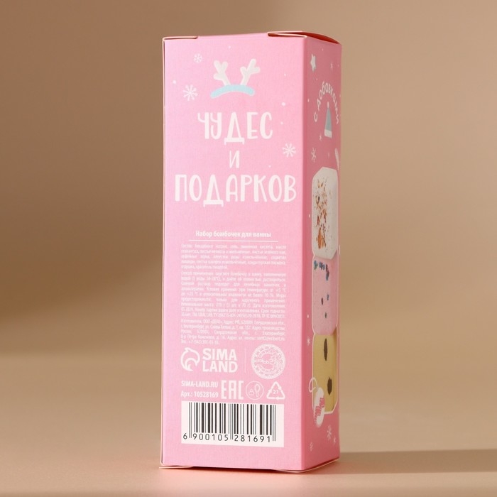 Подарочный набор косметики «Пусть Новый Год подарит сказку», бомбочки для ванны с добавками, 3 х 70 г, аромат ванили, Pink Collection by URAL LAB