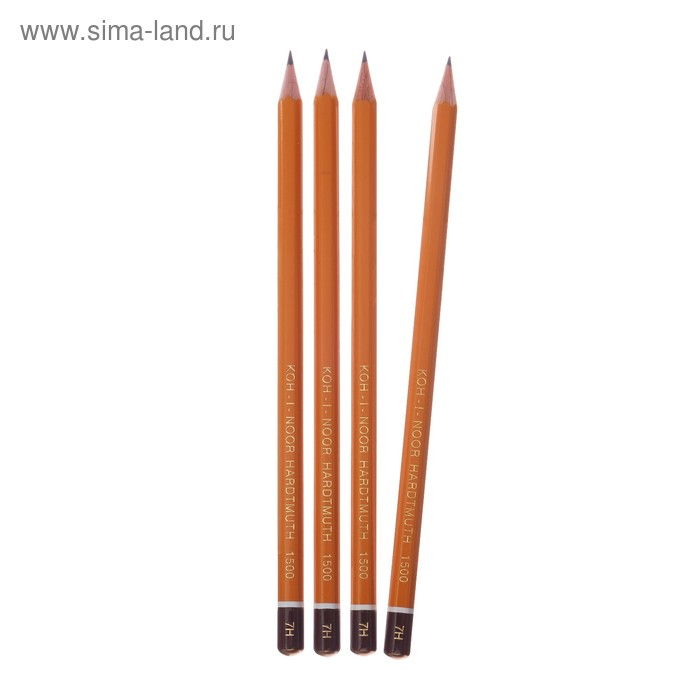 Набор профессиональных чернографитных карандашей 4 штуки Koh-I-Noor 1500 H7, лакированный корпус (3098863)