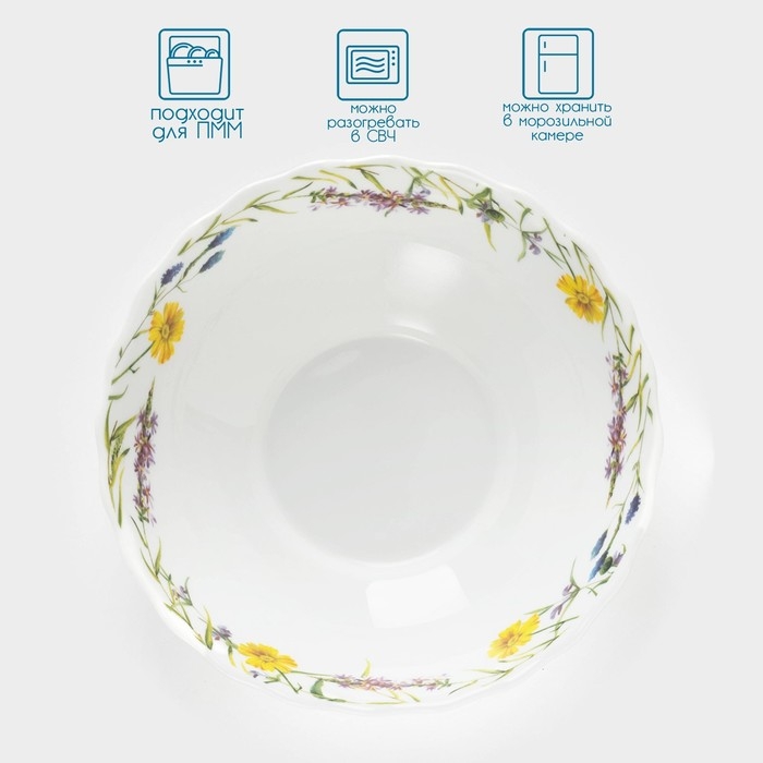 Тарелка суповая Avvir «Полевые цветы», 600 мл, d=17,5 см, стеклокерамика, цвет белый