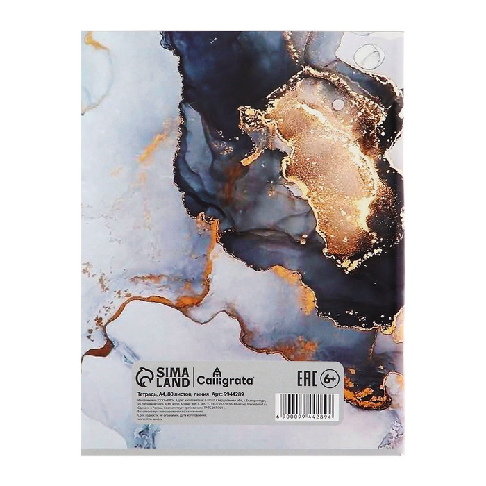 Тетрадь А4 80 листов в линию Calligrata "Мрамор белый с золотым", обложка мелованный картон, блок №2, белизна 75% (серые листы)