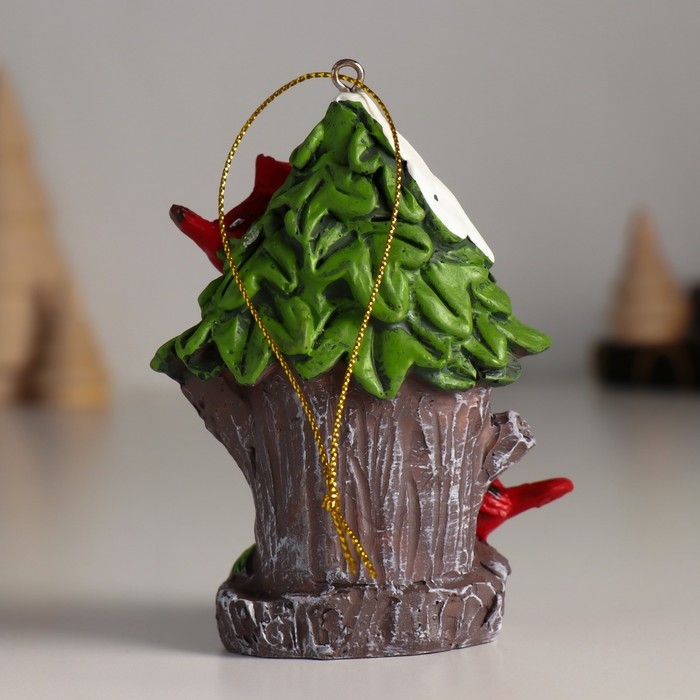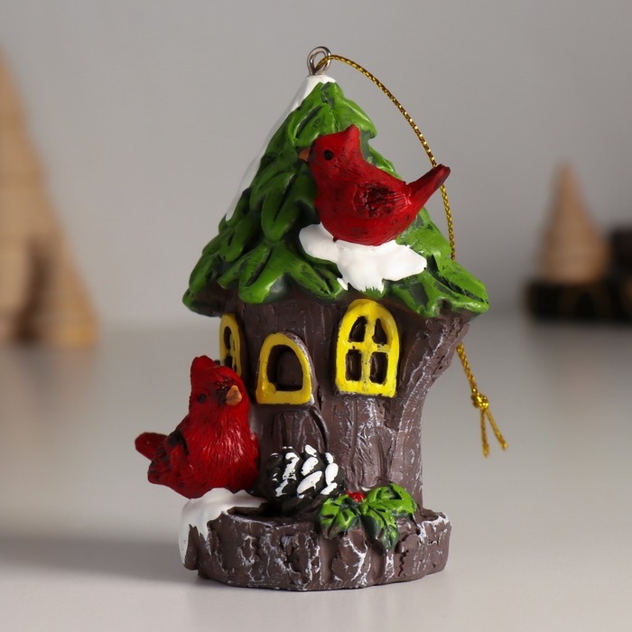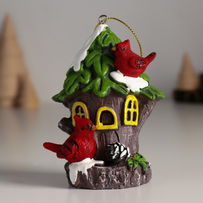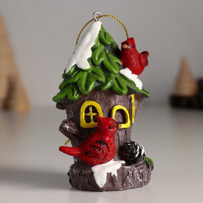 Сувенир полистоун подвеска "Птички на заснеженном скворечнике" 7х4х9 см