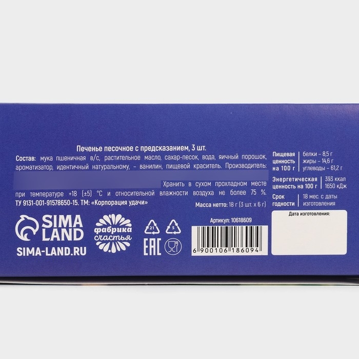 Печенье с предсказаниями «Впусти сказку в свою жизнь», 3 шт