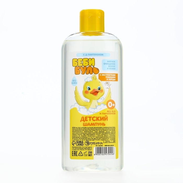 Детский шампунь для волос без слёз, 250 мл, с экстрактами ромашки и череды, 0+, БЕБИ БУЛЬ