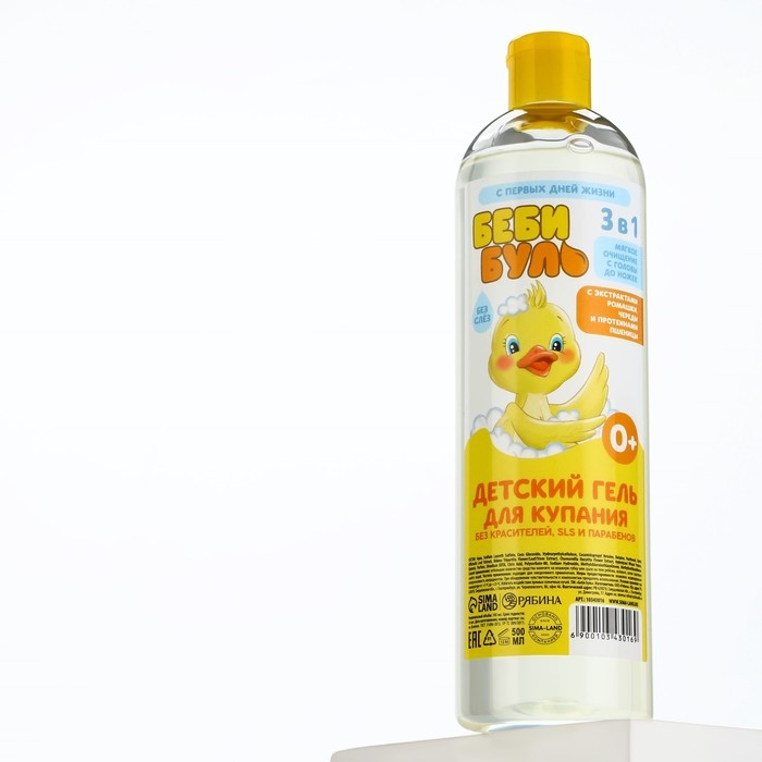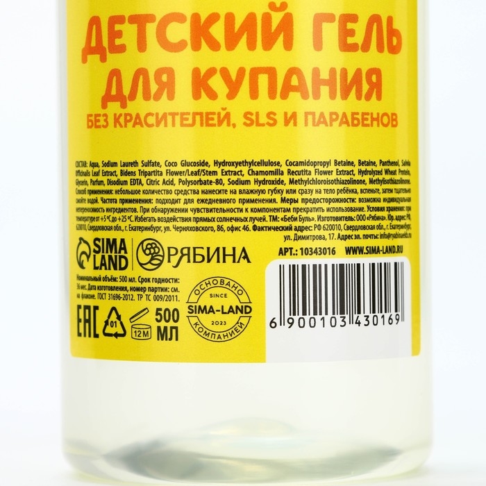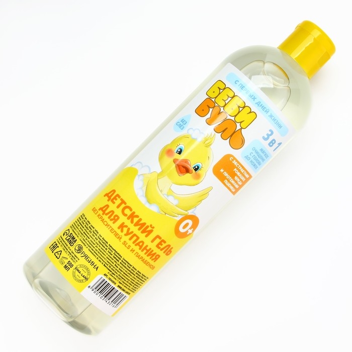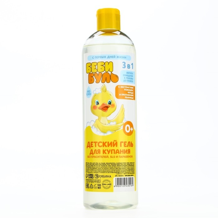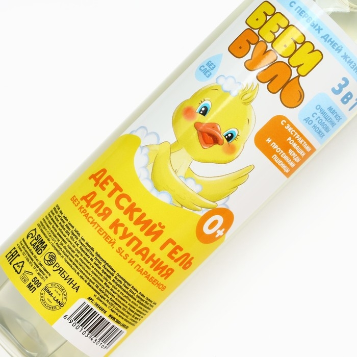 Детский гель для купания без слёз, 500 мл, с экстрактами ромашки, череды и протеинами пшеницы, 0+, БЕБИ БУЛЬ