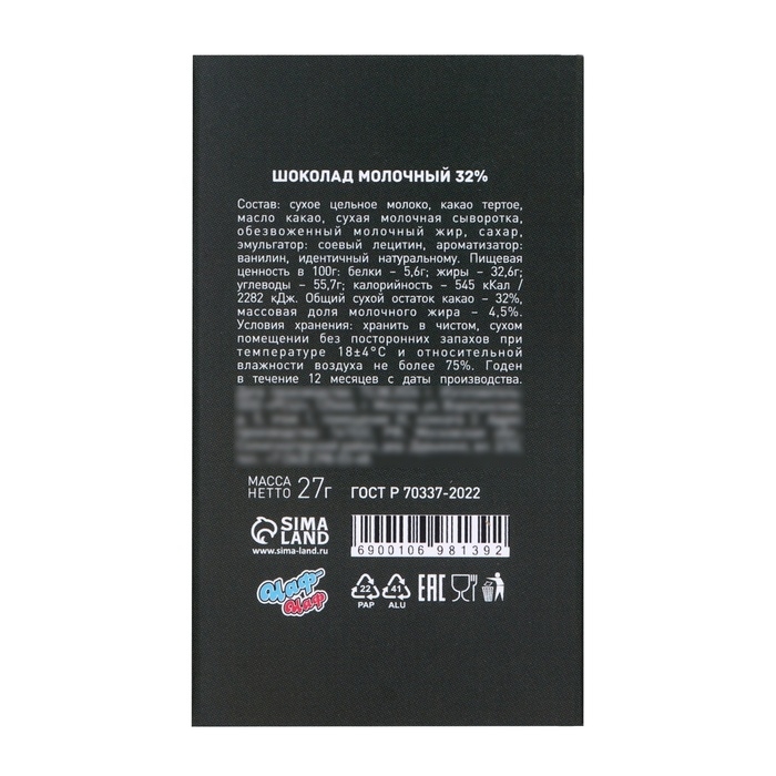 Насладитесь каждым кусочком этого волшебного шоколада, который наполняет сердце радостью и теплом. Пусть шоколад "Счастья в Новом Году!" станет незаменимой частью ваших праздников, создавая незабываемые моменты счастья и уюта!