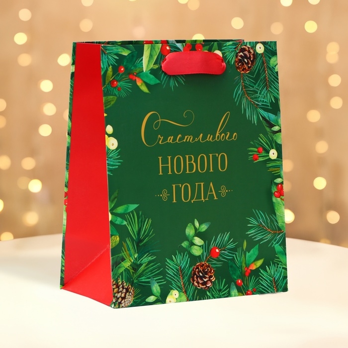 Пакет подарочный "Счастливого Нового года", 18 х 22,3 х 10 см