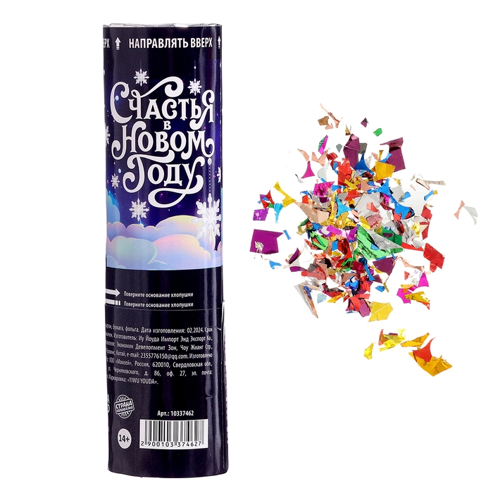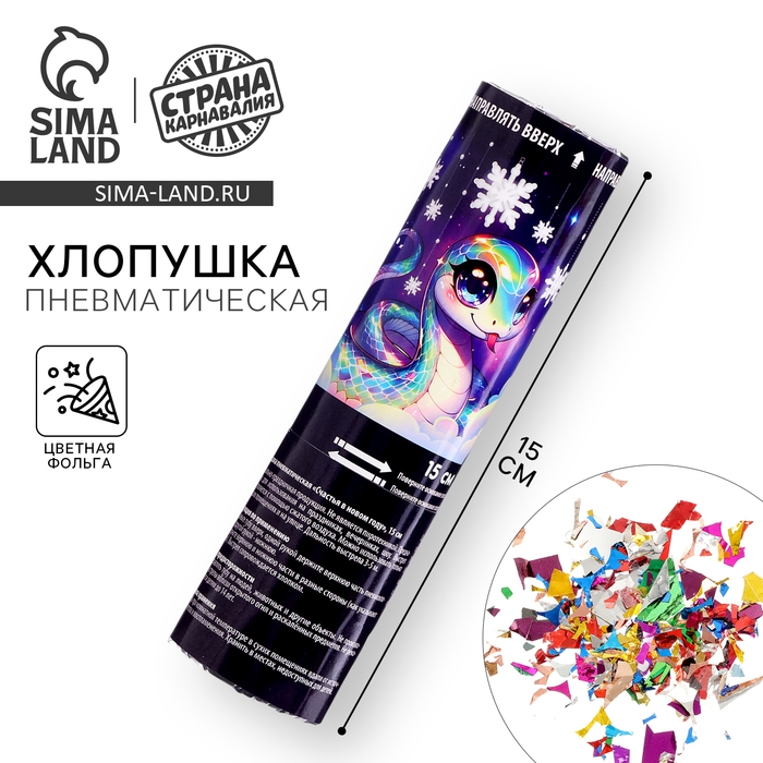 Новогодняя хлопушка пневматическая «Счастья в Новом Году», 15 см
