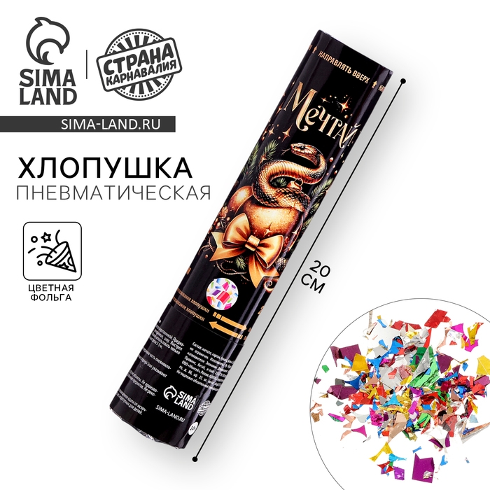Новогодняя хлопушка пневматическая «Мечтай», 20 см, на новый год