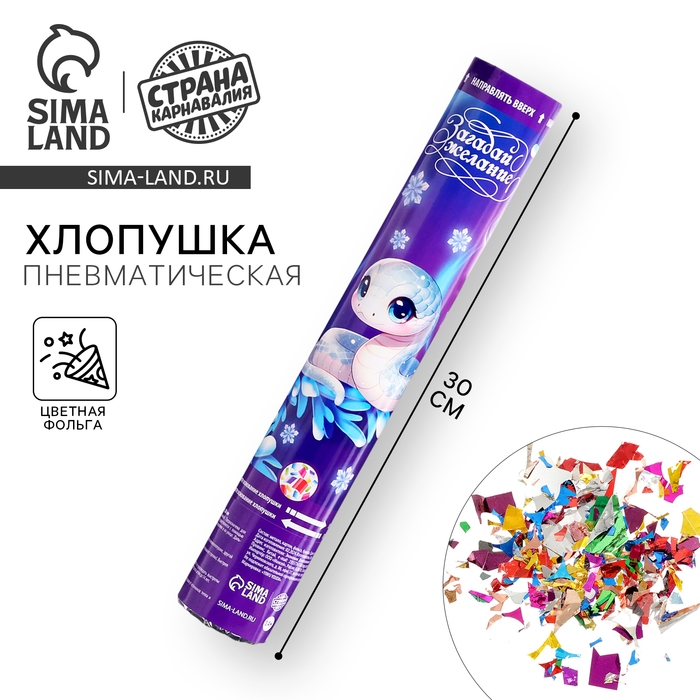 Новогодняя хлопушка пневматическая «Загадай желание», 30 см, на новый год