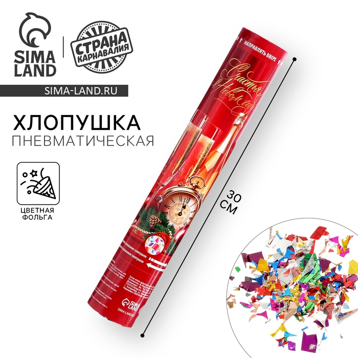 Новогодняя хлопушка пневматическая «Счастья в Новом Году», 30 см