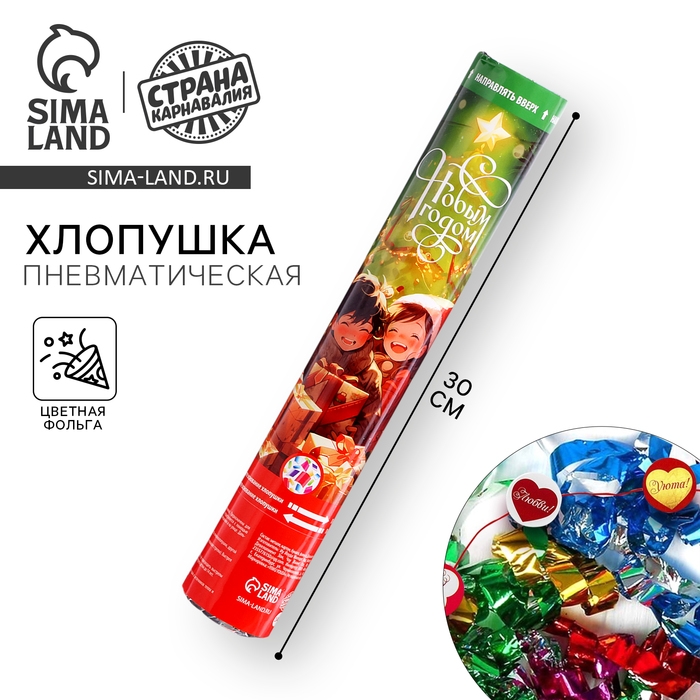 Новогодняя хлопушка пневматическая «Подарки», 30 см, на новый год
