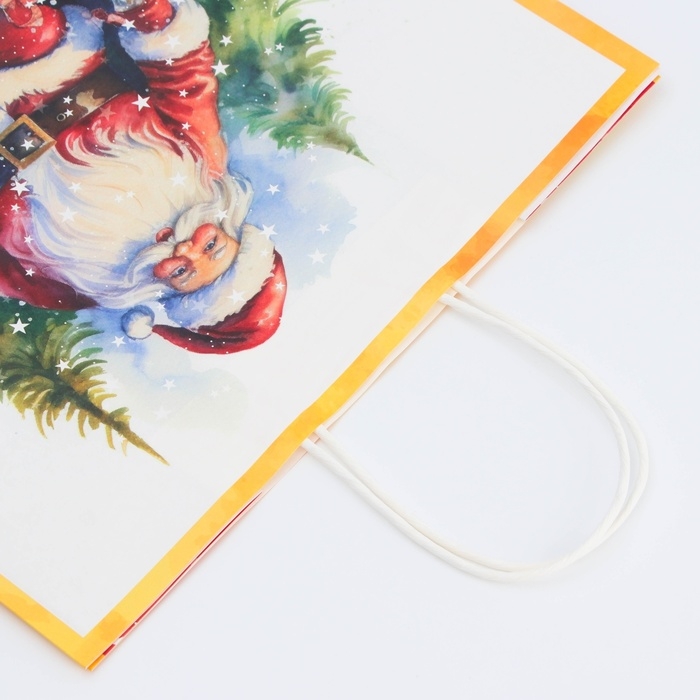 - Новогодний подарочный пакет с ярким, красочным рисунком создаст праздничное настроение.