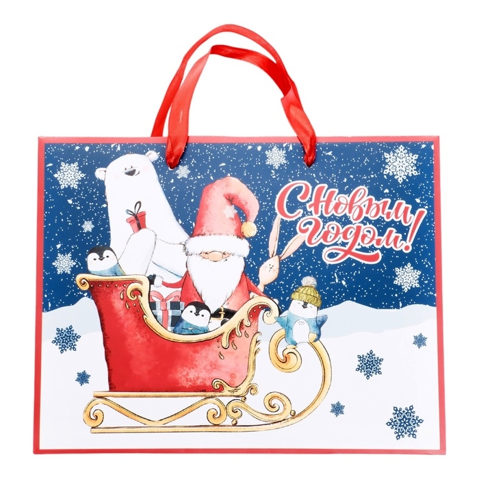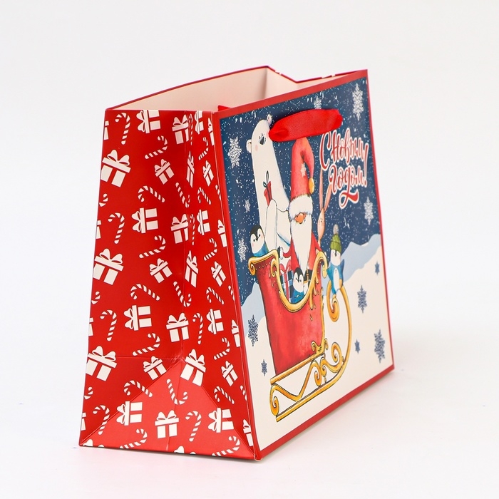Пакет ламинированный «На санях», MS 23 × 18 × 10 см