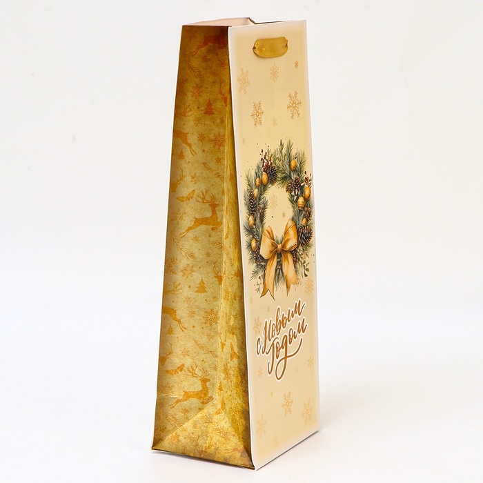Подарочный пакет новогодний — идеальный выбор для упаковки бутылки.