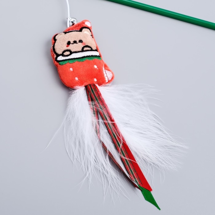 Новый год. Дразнилка-удочка для кошек с бубенчиком "Медведь", 40 см