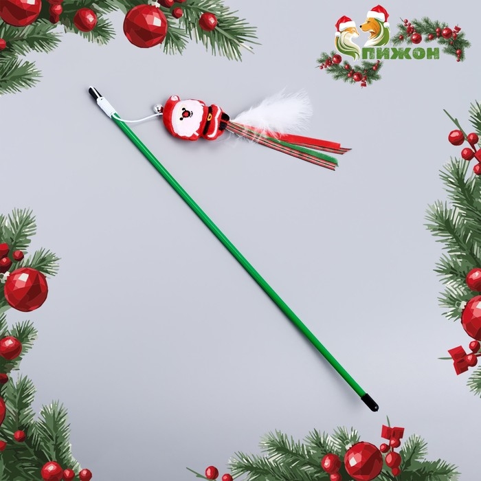 Новый год. Дразнилка-удочка для кошек с бубенчиком "Дедушка", 40 см