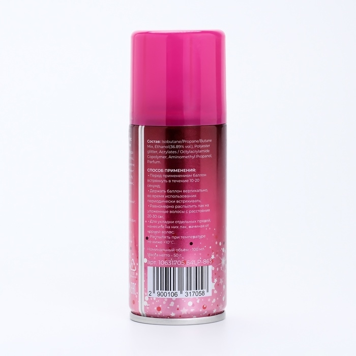 Лак для волос с блестками, фуксия, 100 мл